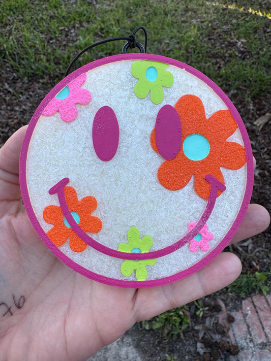 Groovy Flower Smiley Face Car Freshie | Car Freshie | Car Freshy | Air Freshener | Gift | Gllitter
