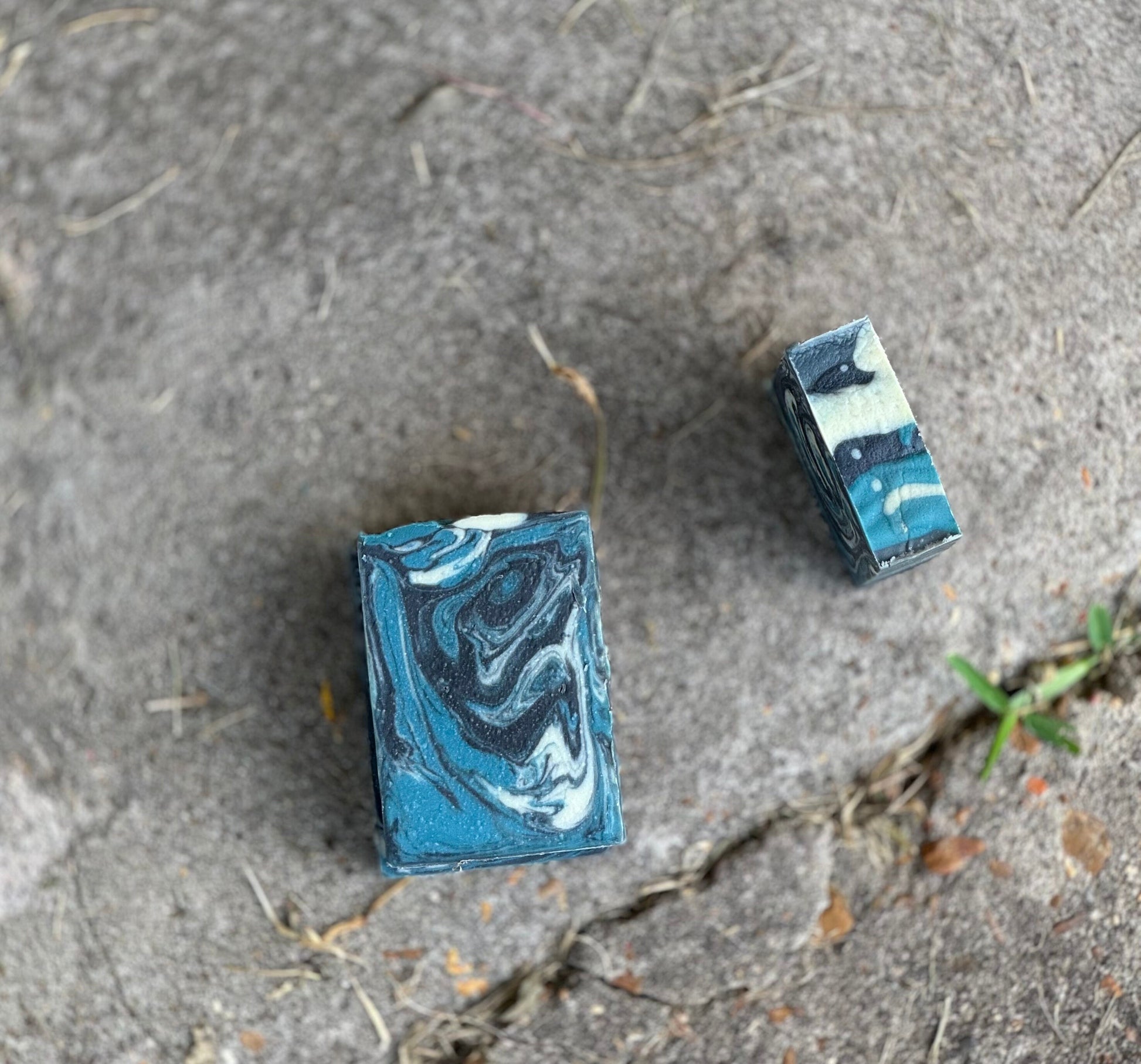 Tobacco & Bay Leaf is made with Activated Charcoal. Has skin loving ingredients like, hempseed oil and Shea butter.